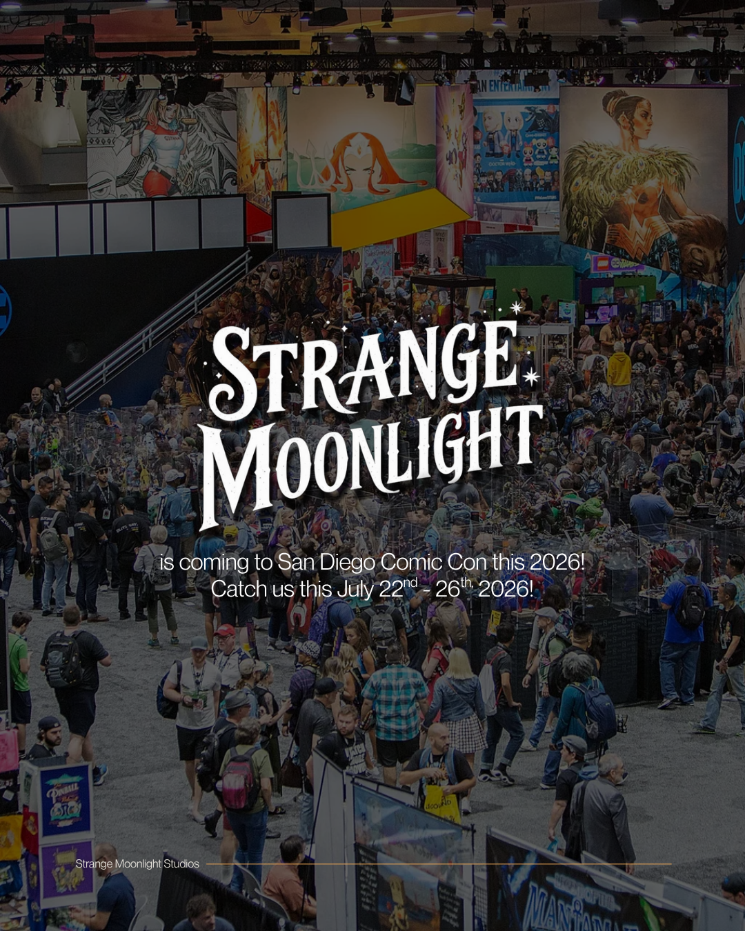 You heard that right! Strange Moonlight Studios will be attending San Diego Comic Con this July 22nd-26th of 2026! See you there.